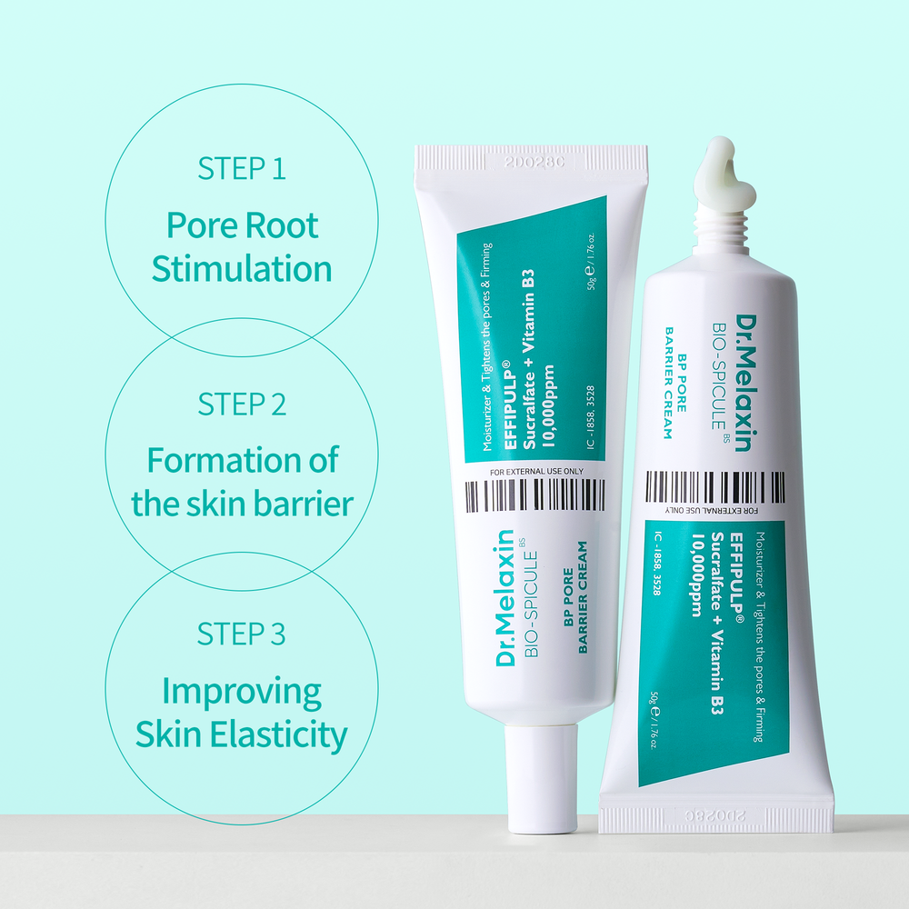 Explore the advanced skincare science of Dr. Melaxin's BP Pore Care Line. This comprehensive regimen leverages revolutionary Bio-Spicule technology across four targeted products: BP Pore Core Cleansing Foam, BP Exfoliating Pads, BP Pore Ampoule, and BP Pore Barrier Cream. Each is crafted to effectively address enlarged pores, control sebum production, and refine skin texture for a visibly smoother complexion.