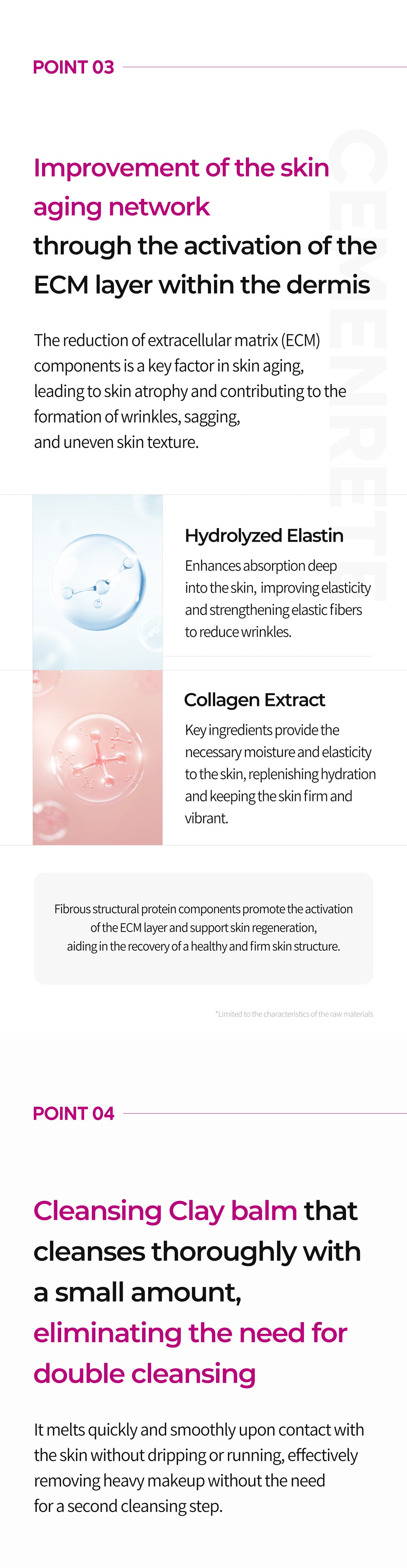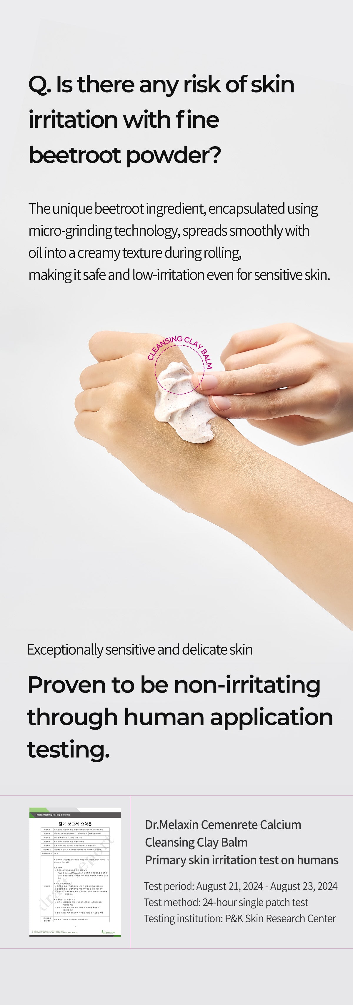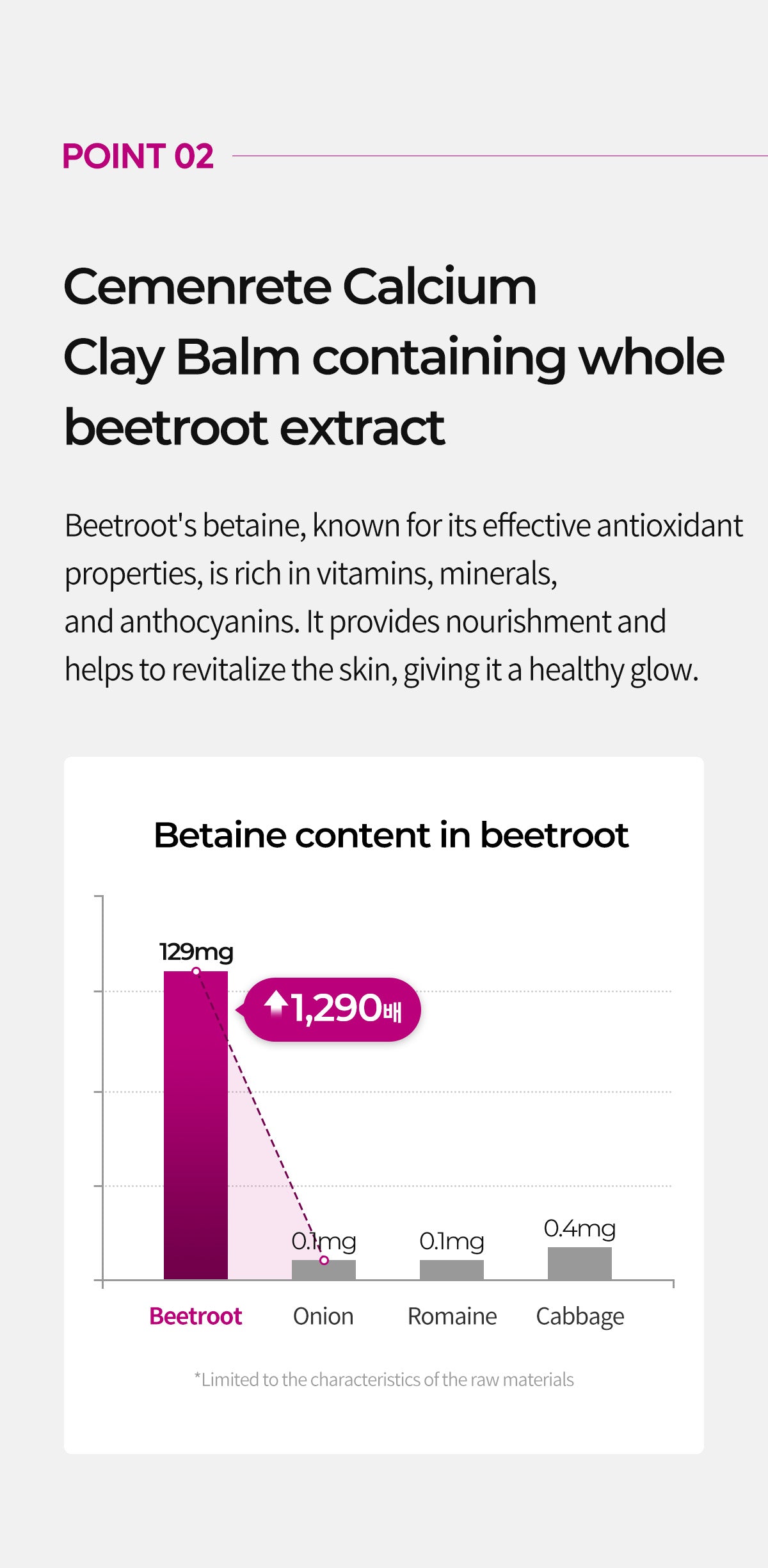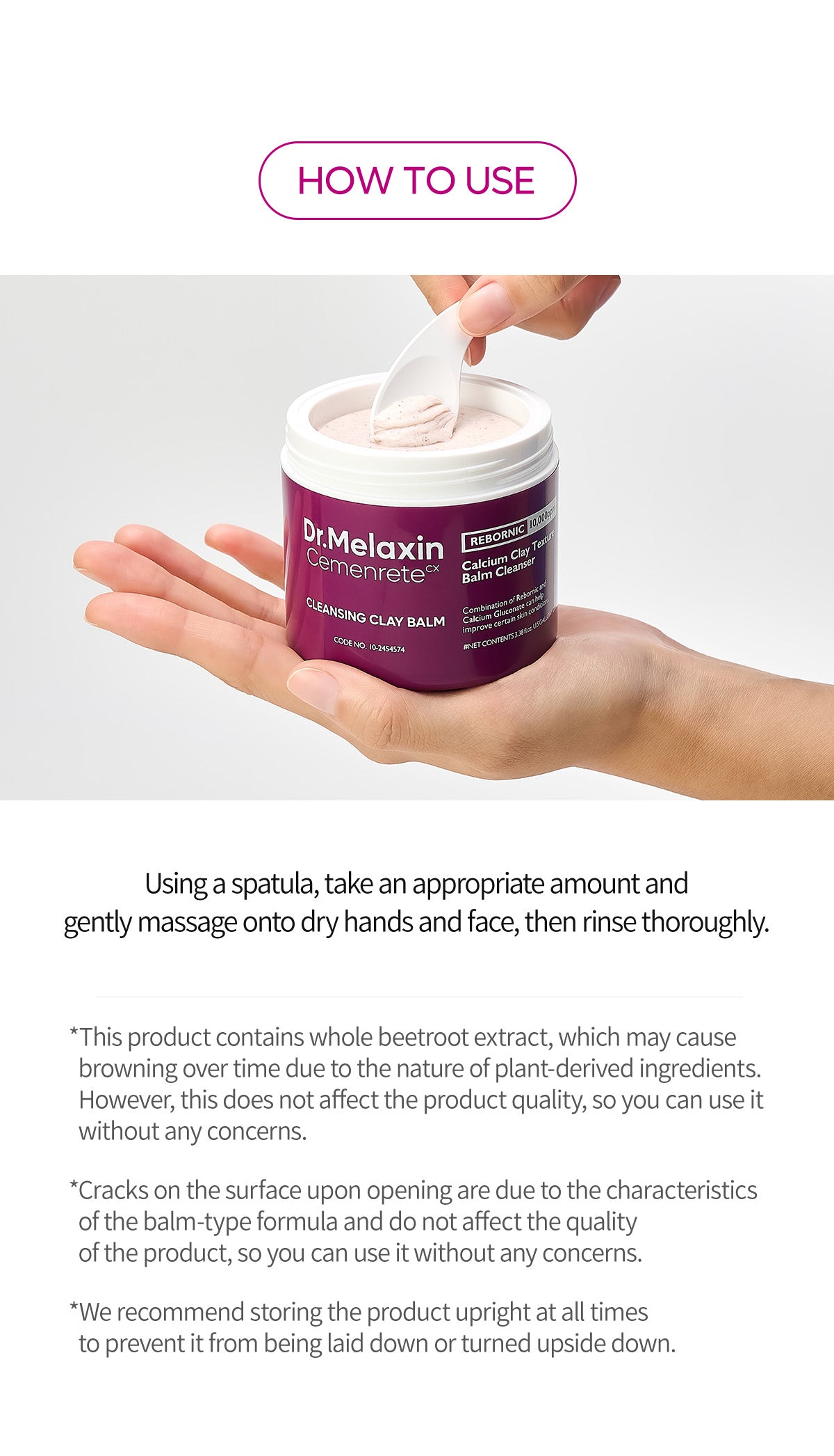 Simplify your cleansing routine with the Cemenrete Calcium Cleansing Clay Balm. This innovative formula contains 10,000 ppm of REBORNIC, a patented ingredient optimized to enhance calcium absorption. Enriched with fine beetroot powder, it effectively removes impurities with a single step, eliminating the need for double cleansing while maintaining hydration.