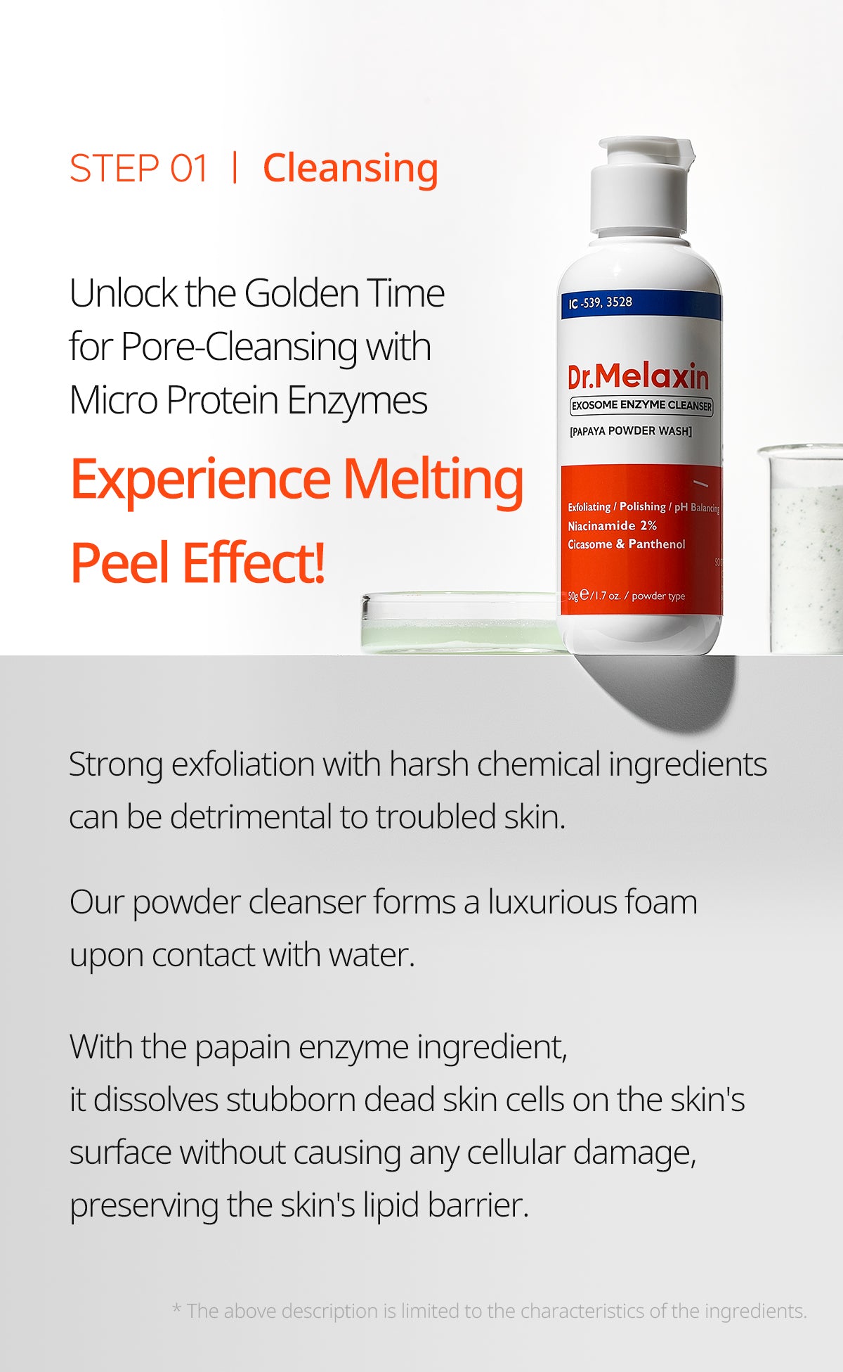 [Enzyme Cleanser] Corn Starch, Sodium Cocoyl Isethionate, Sodium Lauroyl Glutamate, Niacinamide, Diglycerin, Allantoin, Purified Water, Maltodextrin, Sodium Palmitate, Papain, Butylene Glycol, Chromium Oxide Greens, Sodium Lauroyl Aspartate, 1,2-Hexanediol, Panthenol, Buckwheat Extract, Dipotassium Glycyrrhizate, Centella Asiatica Calus Culture Extract, Ceramide NP, Ethylhexylglycerin, Centella Asiatica Extract, Asiatic Acid, Madecassic Acid, Madecassoside.