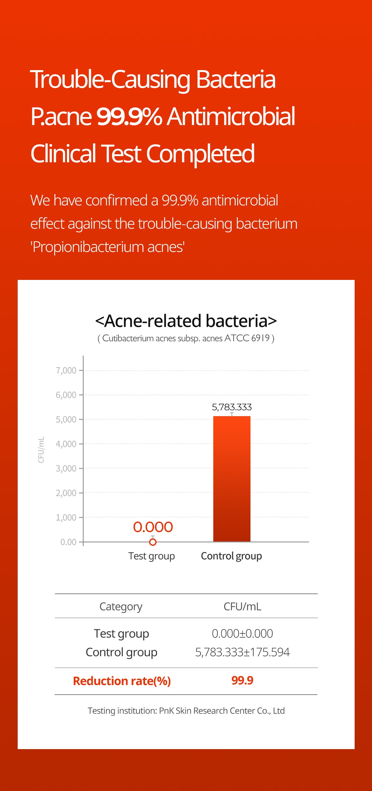 - P.acne antibacterial test 99.9%