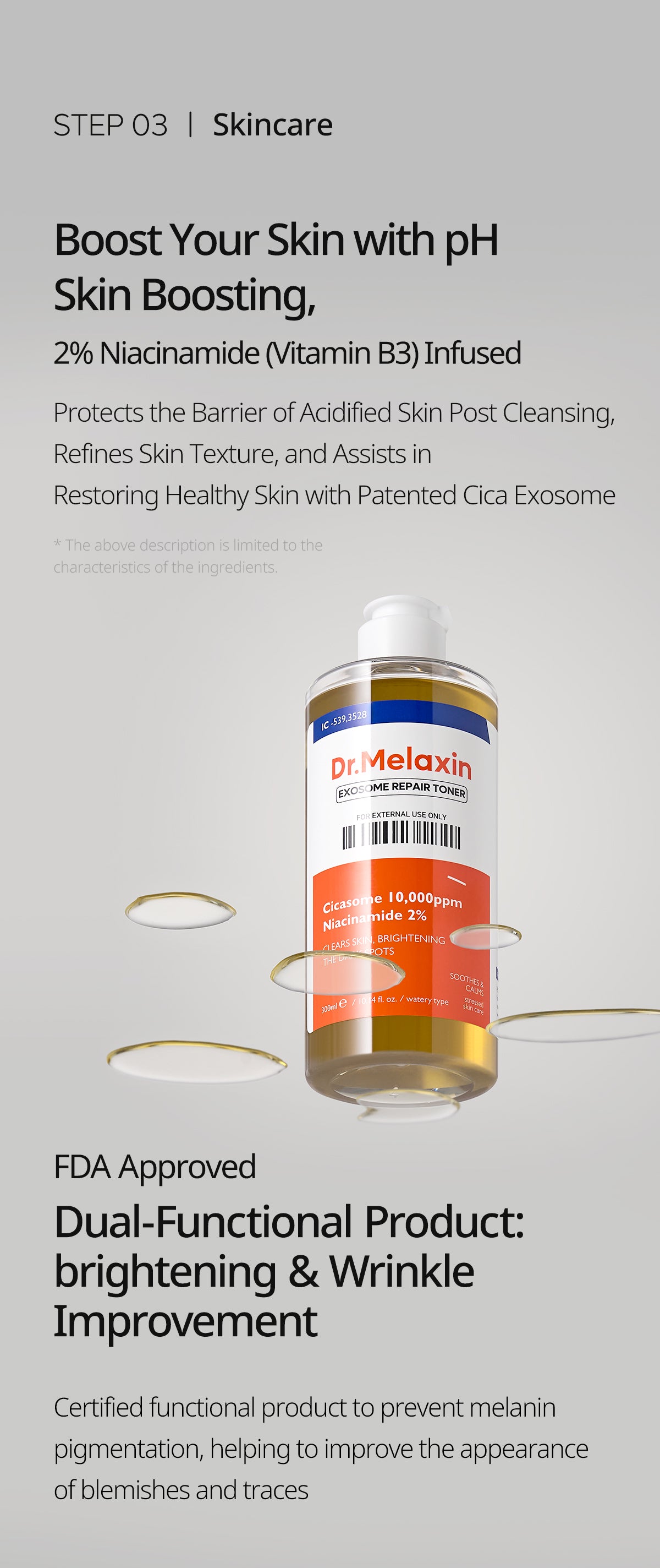 [Toner] Purified Water, Methylpropanediol, Dipropylene Glycol, Butylene Glycol, Glycereth-26, Niacinamide, Propanediol, 1,2-Hexanediol, Panthenol, Glycerin, Betaine, Hydroxyacetophenone, Acrylates/C10-30 Alkyl Acrylate Crosspolymer, Tromethamine, Gossypium Herbaceum (Cotton) Fruit Water, Glycereth-26 PCA Isostearate, Scutellaria Baicalensis Root Extract, Ethylhexylglycerin, Malt Extract, Adenosine, Rubus Coreanus Fruit Extract, Rosa Damascena Flower Extract, Disodium EDTA, Hibiscus Syriacus Bark Extract, Hyaluronic Acid, Hydrolyzed Hyaluronic Acid, Sodium Hyaluronate, Zea Mays (Corn) Kernel Extract, Hydrolyzed Chia Seed Extract, Hydrolyzed Wheat Extract, Allantoin, Camellia Japonica Flower Extract, Hydrolyzed Hibiscus Esculentus Extract, Dextrin, Salvia Hispanica Seed Extract, Theobroma Cacao (Cocoa) Seed Extract, Plantago Asiatica Leaf Extract, Centella Asiatica Extract, Centella Asiatica Root Extract, Pinus Pinaster Bark Extract, Caprylic/Capric Triglyceride, Ceramide NP, Hydrogenated Lecithin, Asiaticoside, Asiatic Acid, Madecassoside, Madecassic Acid.