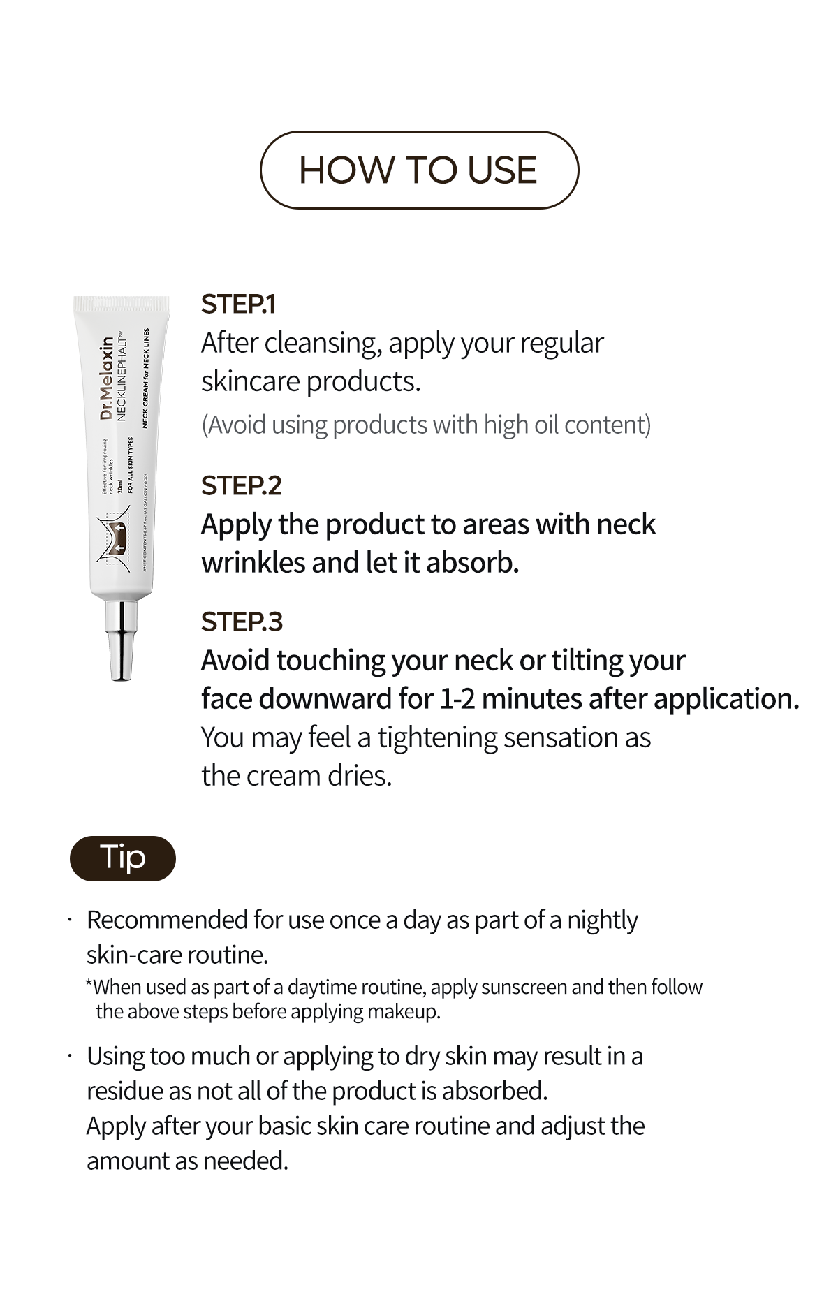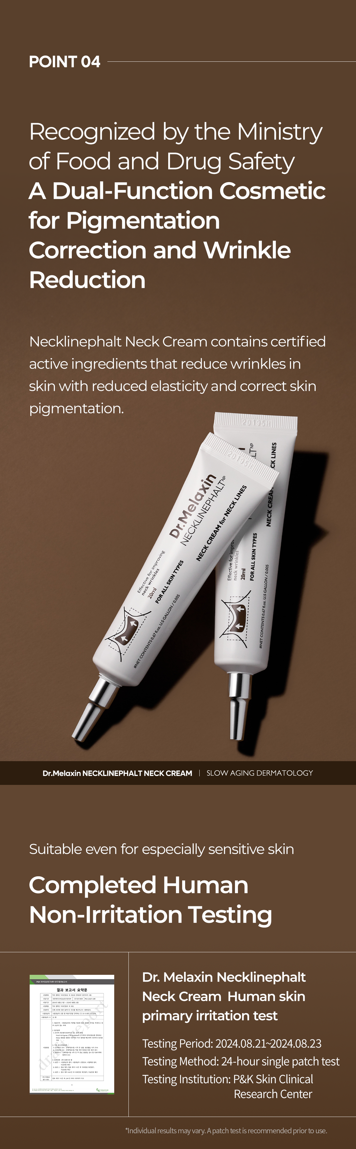- Maximum 141.60% reduction in neck area wrinkles with just one use