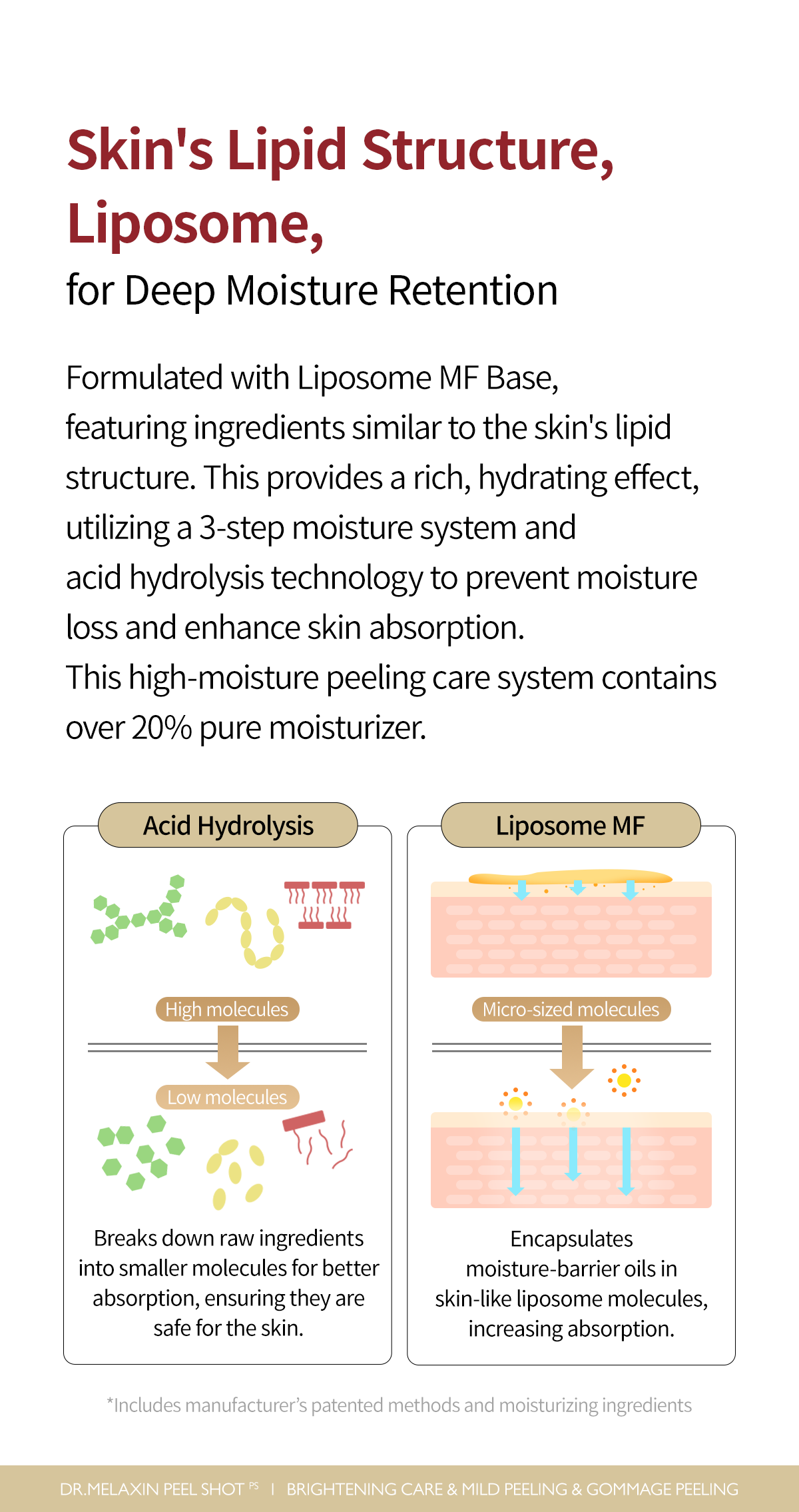 - High-concentration peeling ampoule exfoliates and absorbs instantly