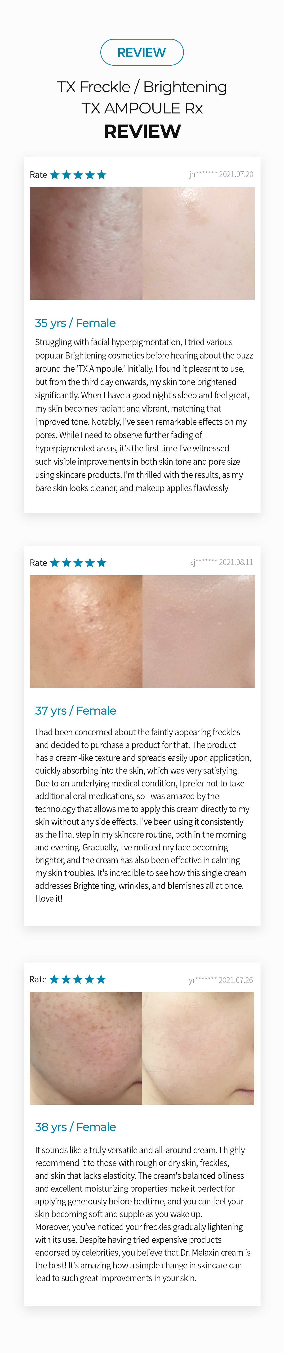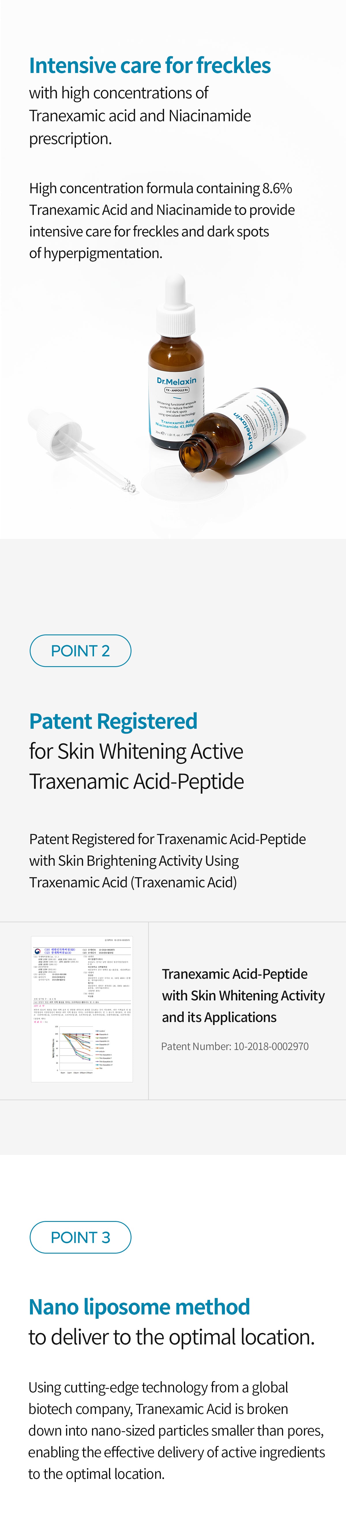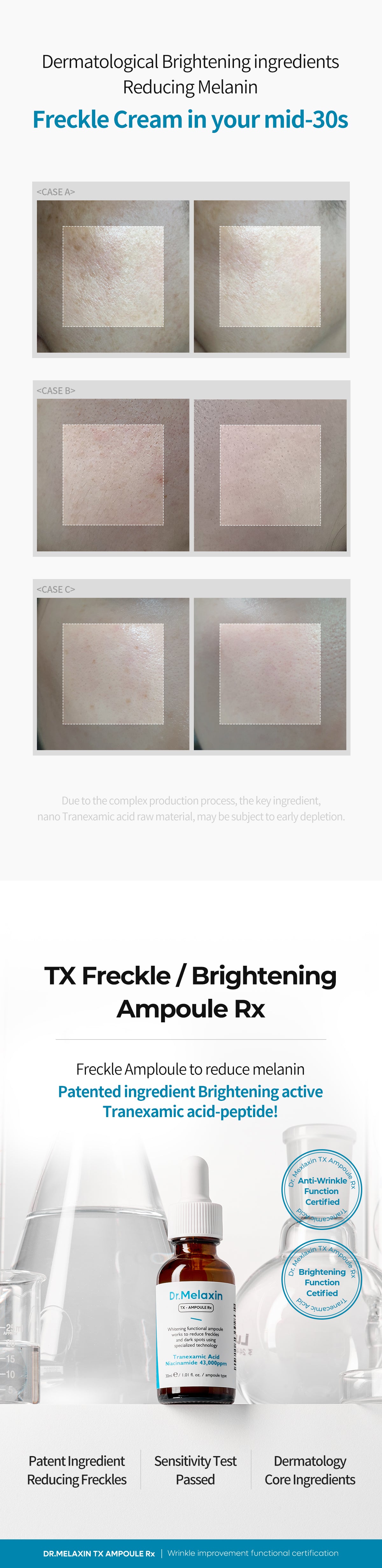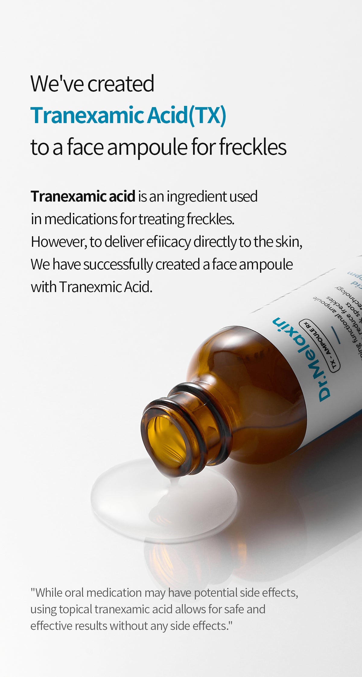 - Tranexamic Acid(TX) improves skin freckles and blemishes.